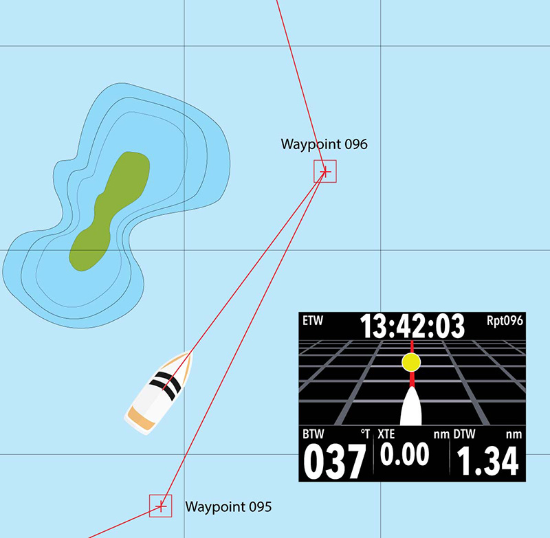Альтернативно вы составляете план навигации с двумя или более путевыми точками, называемый «маршрутом», и используете свою морскую электронику для отслеживания этого маршрута. Если по какой-либо причине вы отклонитесь от маршрута, ваш XTE измеряется относительно текущего участка вашего маршрута и его легко понять.