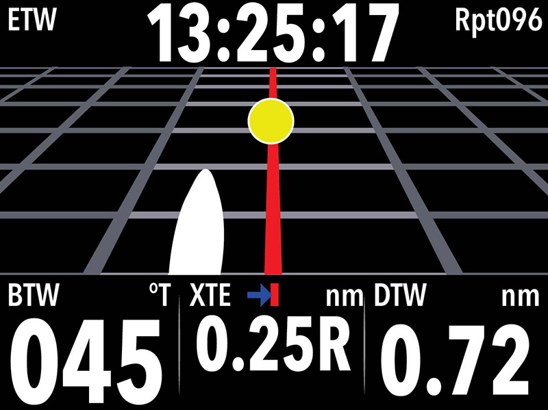 Дисплей XTE является отличным подспорьем при ручном рулевом управлении, особенно для начинающих водителей, которые часто находят графический подход более простым способом понять, куда они поворачивают относительно намеченного курса.