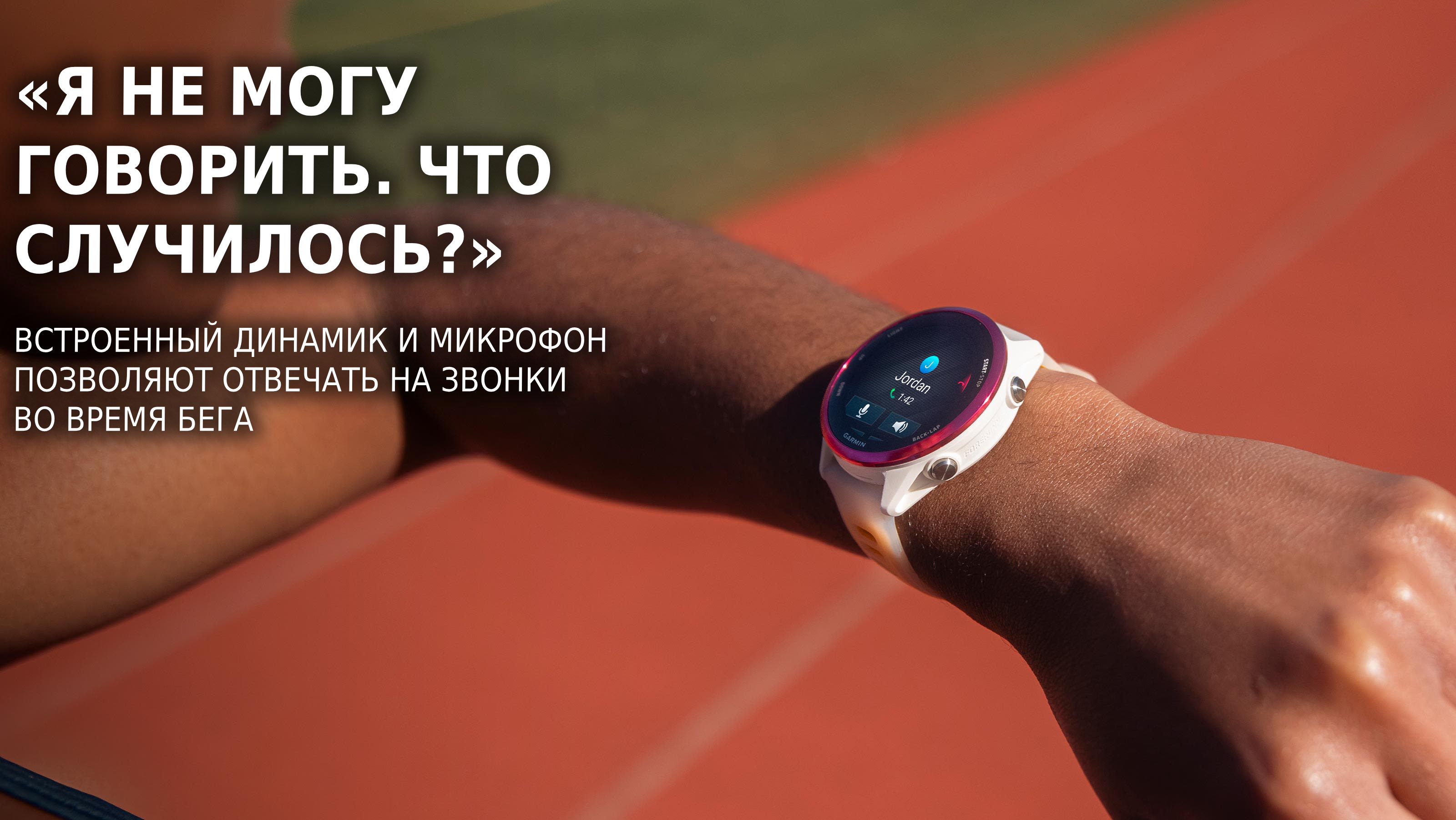 Совершайте и принимайте телефонные звонки с часов после сопряжения со смартфоном. Вы также можете управлять функциями часов с помощью голосовых команд или использовать голосовой помощник смартфона для ответа на текстовые сообщения, а также выполнять другие действия.