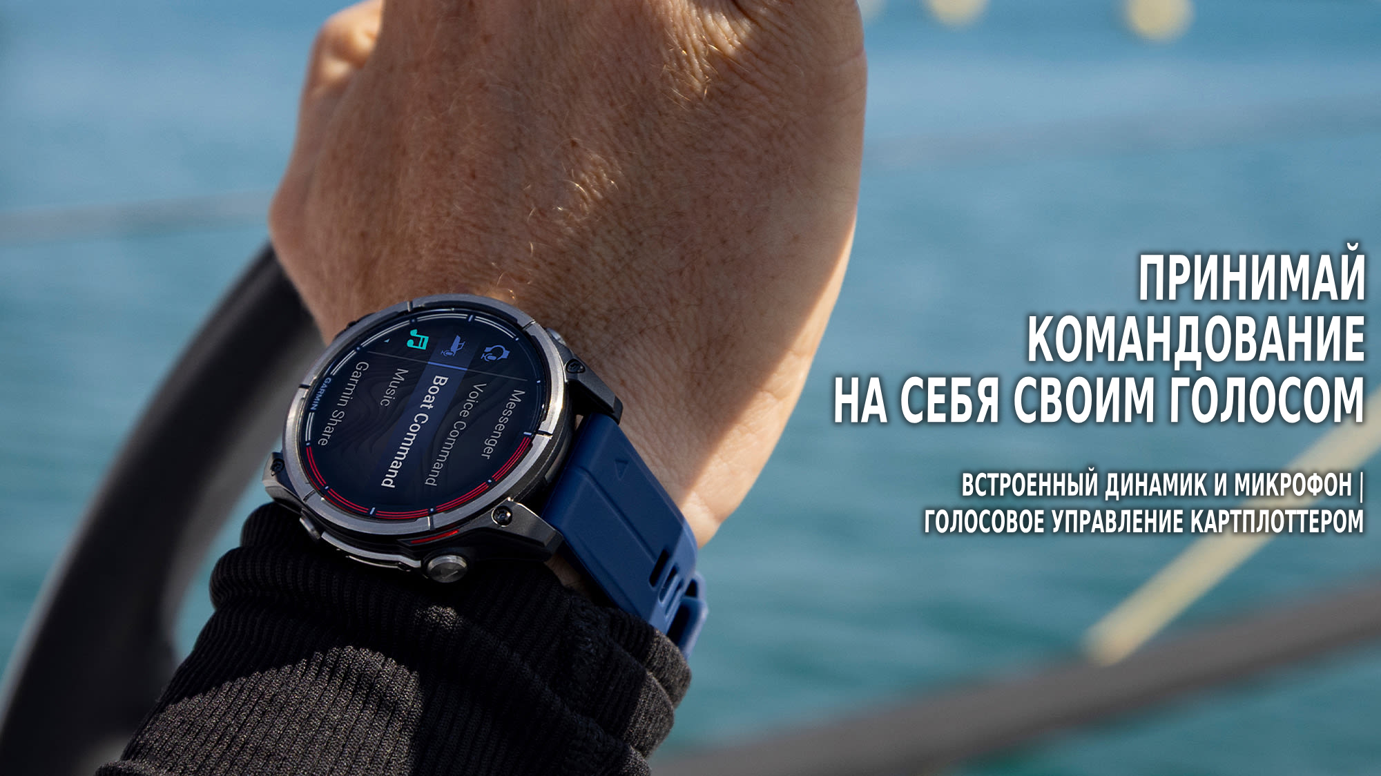Используйте встроенный динамик и микрофон вашего Quatix 8 для управления совместимым картплоттером