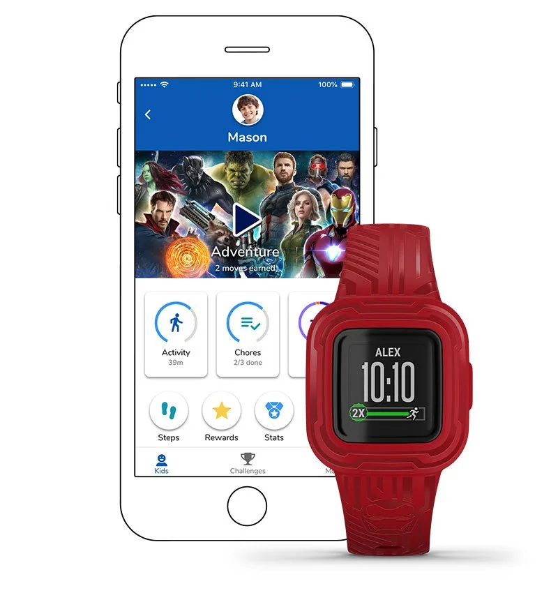 Vívofit jr. 3 — это не просто фитнес-трекер для детей. Это интерактивное приложение, где активность вашего ребёнка открывает захватывающие приключения из приложения Marvel Avengers.