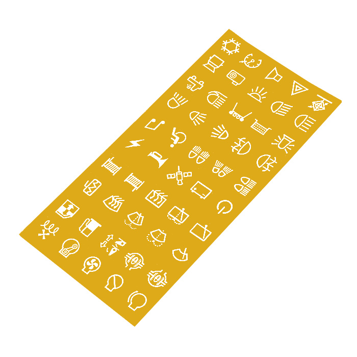 Каждая наклейка имеет размер 10,5 x 10,5 мм и состоит из прозрачной плёнки с нанесённым символом и клеевым слоем. Это позволяет легко закрепить наклейку на нужной кнопке.